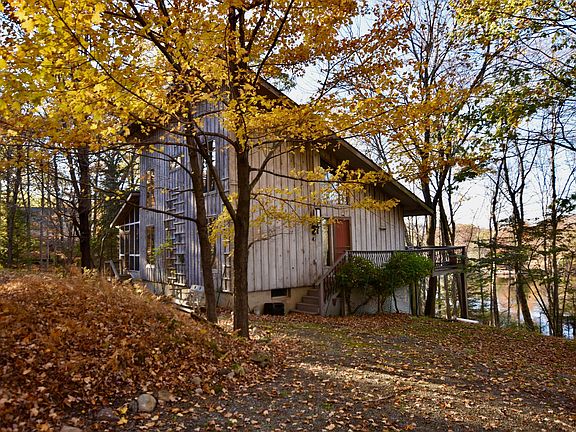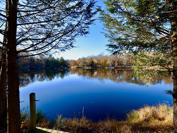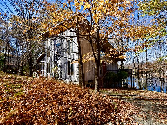 LAKEFRONT BEAUTY. 1.34 wooded acres with 235' of lake frontage. Enjoy lake life from this charming cottage with incredible lake views from large wrap around deck, screened porch and new dock. The first floor features an open floor plan with great room with cathedral ceiling, wood stove and sliders to deck, kitchen, den, screened porch, one bedroom and bath. The 2nd level has 2 bedrooms and one bath. The lower level features a large mudroom with built-in storage and door to the yard, family/game/tv room and storage/work room. Cedar board and batten exterior, 34'x8' wraparound TREX decking with custom wood and wrought iron railing. Lake in the Cloud is a wonderful community. Enjoy four seasons of full time living or weekend getaway within 2 hrs of NYC and Philly.