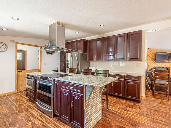 If you're looking for unrestricted land with endless possibilities, this is it. This 7.6+/- acre property can the perfect rec property, homestead, or mini farm that already has a 30x70 SHOP(w/ loft+office space) and pool! Convenient highway access, this 3 bedroom, 2 bath (1440 sq.ft)has been updated with modern rustic chic design. Walk in from the attached, covered parking/porch; gasp in awe of the open living areas, LVP floor spanning the kitch/living/dining room, and luxury kitchen featuring stainless appliances, granite countertops & 42in. cabinets. The center island, w/ seating, makes entertaining a breeze. Main floor master on-suite offers his/hers closets+bath w/ custom cabinetry and walk-in shower. Enjoy the fireplace while overlooking the partially covered deck AND pool! Partially fenced yard leads to shop entrance although property extends further. THE SHOP is ready for ANYTHING! Office space, loft, 3 garage door accesses...the list goes on. Your dream can now be a reality!
