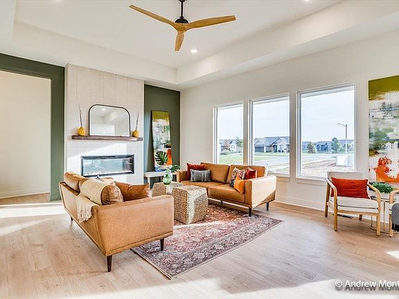 Socora's "Bailey" plan is move-in ready. The low modern roof lines will draw your attention to step inside this open floor plan leading to a warm contemporary interior of open spaces and spacious rooms. The main floor features large windows, electric fireplace, 10' ceilings in the living, dining and kitchen areas, all generating an ample amount of family space. The kitchen highlights double ovens, a large quartz island with eating bar, plenty of cabinet space, pantry, decorative backsplash and quartz countertops. The dining area includes a sliding glass door leading to the 20x15 E facing, covered concrete deck. The primary bedroom is spacious and relaxing while the primary bath offers 2 separate quartz vanities, tiled shower, private water closet and large walk-in closet. The main floor also includes 2 more bedrooms, full bath and laundry room. The basement is complete with a large family room, office space, walk up wet bar, 2 more bedrooms and full bath. The "Bailey" is perfect for entertaining both inside and out with family and friends of all ages. SOD, SPRINKLER AND WELL ARE INCLUDED IN THE PRICE. Fontana offers a zero-entry pool with splash pad, playground, walking paths and lakes. It's also minutes away from New Market Square for all your shopping and dining needs. A $175 mailbox key fee is collected at closing. LOWER SPECIALS, LOWER TAXES AND MAIZE SCHOOLS. All information deemed reliable and not guaranteed. OPEN THURS - MON 1:00-5:00 OR ANYTIME BY APPOINTMENT.