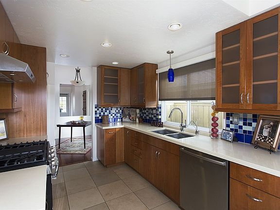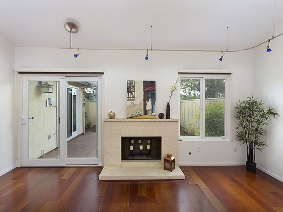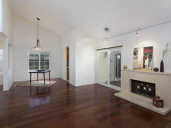 Lots to love about this home. Gorgeous downstairs solid wood flooring, refinished 2017. Vaulted ceilings with modern custom lighting, limestone faced fireplace, dining area, custom window shades and downstairs bedroom. Updated kitchen with Quartz counters, upgraded wood cabinets, a breakfast nook & 2017 gas range. Master bedroom with built-in storage window seat, two closets & dual master bath vanity. Guest bedroom with walk-in closet. Low-e dual pane windows, serene backyard patio & fresh paint thru-out. Desirable Fox Run PUD neighborhood. Twinhome with two car finished garage. Newer, insulated roll-up garage door. Insolroll quality solar shades on all windows and sliders. Dual master closets with built-ins. One closet with triple mirrored doors and cedar lined floors. Carpet replaced on the stairs in 2017. Solid surface wood laminate flooring upstairs. Lots of wonderfulness in this home.