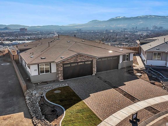Welcome to The Views- an elevated living experience! This thoughtfully designed community provides the rare opportunity to own a spacious, 2,000 + sq ft single-story home with modern finishes and some of the best views in Reno. The list of upgrades includes: 8' interior solid core doors, chrome lever door hardware, 3" door casing and 5" craftsman base, fireplace, smooth drywall finish, 2- tone interior paint, security and speaker pre-wire, upgraded cabinets with dovetail drawers and soft close hinges., There are two base package selections to choose from: the more affordable package, known as the Peavine Series, and the more elevated finish package, known as the Sierra Series. Both series come with paver driveways, paver walkways, paver patios, rain gutters, fully fences yards, 9 ft ceilings, open floor plan, full interior safety sprinkler system, and lots of windows for all those views. The homes do not share a common wall and have their own wall structure with an air gap between their exterior walls, they are connected by the roof. This Peavine Series home comes with incredible views and the best price in the community's cul-de-sac. The home combines lock-and-leave living with the convenience of easy access to everyday essentials and key destinations. Located just an eight-minute drive from the airport, downtown Reno, and the University of Nevada, Reno, and only a few minutes from the freeway and major shopping areas like Northtowne Plaza, this location offers an ideal blend of tranquility and accessibility.