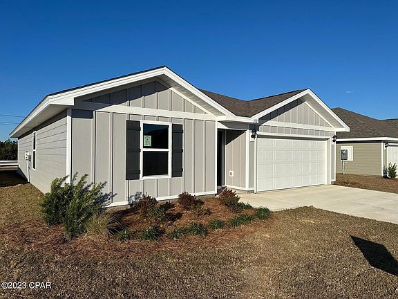New construction home located at 3148 Rachel Place in Hodges Bayou. This home overlooks a small pond. When you enter the Freeport floorplan through the prairie door you will notice immediately the brightness of the entry hallway. This 4-bedroom 2 bath, 1387 square foot, home is an open floorplan with two bedrooms separated by a full bathroom at the front of the home and one bedroom across the entry hallway affording family and friends alike privacy when visiting. The large kitchen island overlooks the dining room and living room. The main areas of the home as well as the bathrooms and laundry have beautiful, engineered vinyl plank while the bedrooms offer plush carpeting. The spacious primary bedroom leads to the bathroom featuring a large shower, single vanity, and a closet. This community is just a short drive to schools, restaurants, beaches, and all that Bay County has to offer. Family time can easily be enjoyed biking or taking evening walks to catch those gorgeous sunsets over the bayou. Sidewalks wind throughout for you to enjoy nature at its finest.