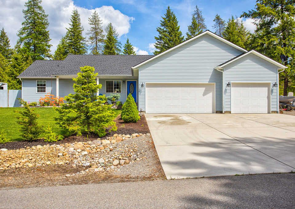 Beautiful Spirit Lake Rancher on half an acre! This single level home features 3 bedrooms, 2 bathrooms, 1,666 sq ft, an open floor plan, vaulted ceiling, gorgeous kitchen with island, full backsplash and lots of storage, master suite with full bathroom, double sinks and sliding glass door out to the back patio and a laundry room with plenty of storage off the garage. Outside enjoy the half acre lot, covered patio, fenced yard, garden area, fruit trees, 3 car attached garage, above ground pool and mountain views.
