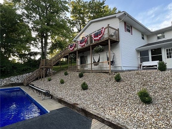 HAS NEW LINER IN POOL IN JULY 2023. UP STAIRS HAS SUNKEN LIVING ROOM. THE FAMILY ROOM UP HAS BUILT IN FIREPLACE DONE BY ARMISH.AND WOODBURNER IN REC ROOM DOWN. HAS A SIDE WALK AROUND DECK TO BACK PATIOS. DONT KNOW WHAT ELSE YOU WOULD NEED TO MAKE THIS YOUR FOREVER HOME.