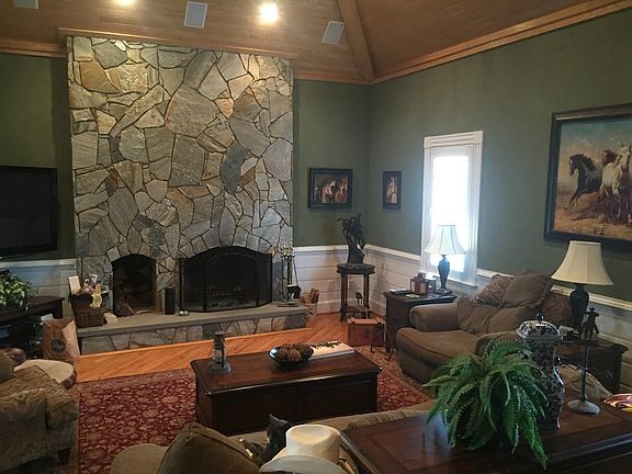 Horse Lovers Delight! Exceptional Elegance, Transitional brick and stone rancher with over 44.66 acres (30 open), private grand country living, great for horses, 1/2 mile driveway, 20 min from 95/VA State Fairgrounds. 4200 sq.ft on one level, 3 bed/3.5bath, 3 car garage, pool w/gazebo, huge kitchen, open floor plan, many upgrades, great architectural details. 3100+ sqft 7 stall barn with wash rack. Tack, feed and utility room with heating and AC. Fenced paddocks and 10 acre hay field!