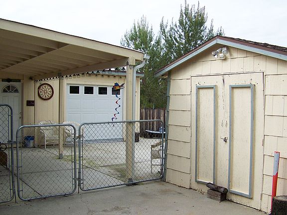 home is all the extra parking space you get; with 2 extra long driveways there is lots of room for all your vehicles, boats and other lake toys. In addition to that there is plenty of exterior storage with two sheds. One shed has a roll up garage door perfect for golf cart storage (A Heritage Ranch Tradition) or even a workshop. The very comfortable back covered patio is ideal for relaxing with the family or entertaining friends on those gorgeous, Lake Nacimiento summer evenings. The interior is one of a kind, with wood laminate throughout. Inside there also sits a wood burning stove and ceiling fans to heat and cool and ample interior storage. This home was originally designed as a 2 bedroom. There has been added, a cozy room in front that is currently decorated like a 50’s diner, a bonus room currently being used as a third bedroom, and, in the rear of the home is your very own Tiki room complete with tiki bar and plenty of space for entertaining. Bring your imagination and all your lake toys for fun in the sun enjoyment!