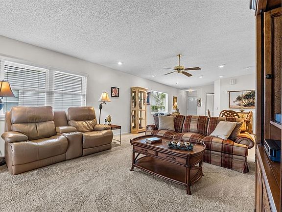 HUGE PRICE IMPROVEMENT!! Welcome to your dream home located on the 13th hole of the golf course—where serene views and comfortable living come together. This spacious 2-bedroom, 2-bath residence offers over 1,900 square feet of thoughtfully designed living space. Step into a chef’s kitchen featuring a large center island, perfect for entertaining or casual meals. You'll love the formal and casual dining areas, giving you flexible options for everyday living or special gatherings. The living room overlooks the lush golf course and flows into a bright and airy Florida room, ideal for a sunlit lounge, hobby space, or home gym. Just off the primary suite, discover a dedicated office nook—also with golf course views—making working from home a pleasure. The guest bedroom and bath feature volume ceilings that create an open, inviting atmosphere. Retreat to the primary suite with a spacious bath including a huge vanity with new sinks, a relaxing garden tub, and a step-in shower. This home is designed with several skylights throughout, flooding this home with natural light. There's an inside laundry room with room for a fridge or freezer plus upper cabinets for storage. Notable updates include: Roof (2023), Air Handler (2021), HWH (2023). You'll love the carefree lifestyle that Highland Fairways has to offer- your low monthly HOA Fee covers Spectrum Cable TV, Internet, WiFi, lawn maintenance and use of all the amenities such as pool, tennis, shuffleboard, billiards and so much more! Very convenient to shopping, restaurants and Interstate 4 access!