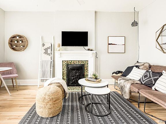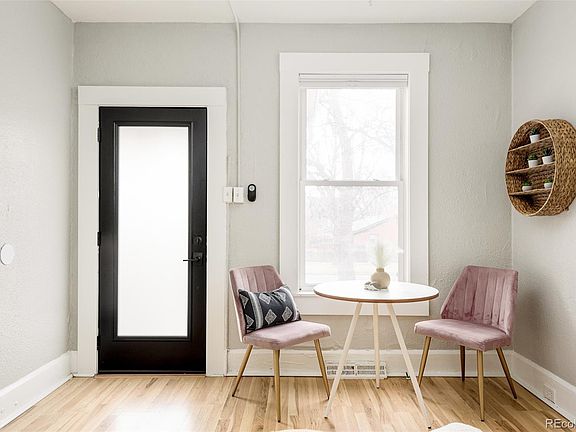 A harmony of timeless details and modern updates unite in this charming Sloan’s Lake home. Residents are greeted by a quaint, covered front porch inviting entry into a luminous layout. An original decorative fireplace anchors the living area inspiring nostalgic flair. Thoughtfully updated, the kitchen showcases granite countertops, custom cabinetry and stainless steel appliances. Located off the kitchen, a laundry area w/ a washer and dryer is an added amenity. Two sizable bedrooms offering ample closet space and ceiling fan light fixtures beam w/ brightness from large windows. An updated bath features subway tile and modern fixtures. Additional storage is found in the basement w/ flex space ideal for a home office. Enjoy outdoor relaxation in a private, fenced-in backyard w/ drought-friendly, professionally installed turf. Upgrades include newer windows and updated electrical. Discover effortless living in a desirable location w/ no HOA and easy access to Sloan’s Lake and restaurants.