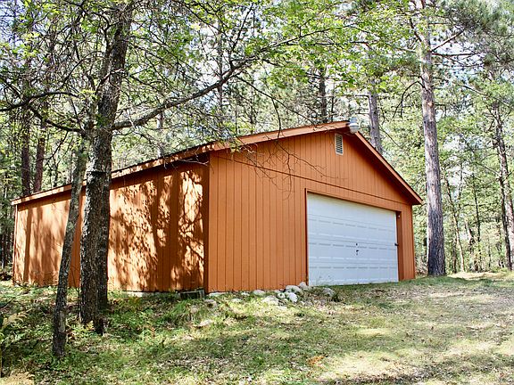28x28 detached garage, 10x16 storage shed, 2 bedroom, 2 bath, 3 skylights, Anderson windows. Swing set with kids play house, firepit and trails on property.