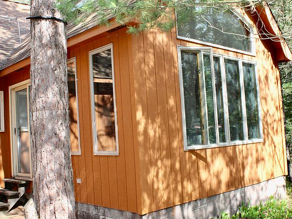 10 Acres adjoining state land. Home is very private and is not visible from county road. Up north chalet with beautiful sunroom. Sunroom offers sky lights, french doors and sliding glass door. Open vaulted ceiling in the living room, brick fireplace, open staircase, loft could be converted to a 3rd bedroom.