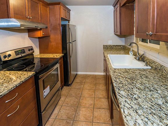 Cozy, move-in ready, three bedroom ranch in Casas Adobes Park. Recent updates include roof recoated, popcorn ceilings scraped and retextured in main areas, all rooms freshly painted, LED lighting and dual pane windows thoughout home. New carpeting and closet doors in bedrooms. Kitchen has granite countertops with breakfast bar, new stainless refrigerator, oven range and exhaust hood, new ceiling fan in dining area and spacious cabinets with soft-close hardware. French doors lead to outside covered patio. Oversized private backyard with two bonus freestanding workshop sheds with 220V electric. Yard has double-wide gate to allow Class A RV access. Convenient location close to parks, shopping and I-10.