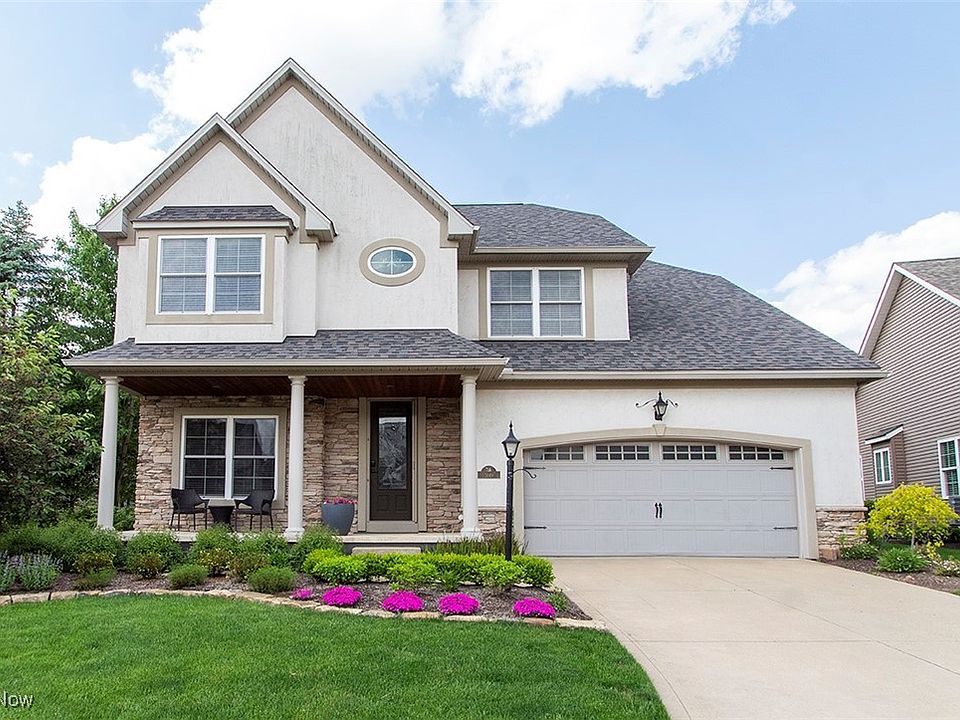 This fabulous cluster home in Blue Heron is complimented with custom amenities throughout. Outside you will appreciate an inviting front porch along with a private backyard that includes a stone patio and gazebo with a gas log fireplace. The two-story great room offers a gas log fireplace, wood flooring, palladium window, and is open to a gourmet kitchen featuring cherry cabinets, granite, breakfast bar, stainless steel appliances, and a pantry with a sliding barn door. A first floor owners suite offers a double tray ceiling with rope lighting plus a deluxe bath with a garden tub, tile shower, and walk-in closet. A first floor office, half bath, and laundry room complete the first level. Upstairs you will find two additional bedrooms, a loft, full jack-n-jill bath and finished storage area plus another storage closet. A professionally finished basement provides extra living space and includes a recreation room, a nice bar, half bath, and large storage room. Newer HVAC and roof (2024). Neighborhood amenities include walking trails, pool, tennis courts, and a neighborhood brewery/restaurant. Excellent access to highways. Call today for your own private tour!