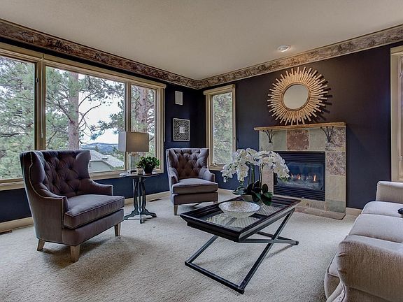 Open the embossed solid copper door to this relaxed yet refined Evergreen home of distinction, featured in the Parade of Homes. A grand & inviting entry leads to an open, flowing floor plan, perfect for entertaining. Custom features throughout which include art glass, window treatments, crown molding and hickory flooring. A serene master suite provides a dramatic gas fireplace and a spa-like 5-piece bath, complete with Ann Sacks tile, free-standing tub, and in-floor radiant heating. 3 additional bedrooms, 3 bathrooms & a large bright flex space offer plenty of space for your family & guests. The kitchen features reclaimed antique Pine cabinets, granite counters, & New Dacor, KitchenAid, and GE appliances. The basement was finished in 2019 with a bedroom, custom full bathroom, workshop, and lots of open spaces. One of the most special features is it's unique park-like setting w/ a two-tiered patio & mature Evergreens & Blue Spruce. This impeccably maintained home is located within an exclusive gated community, close to everything Evergreen has to offer & easy access to Denver and the mountains. Welcome home!!!