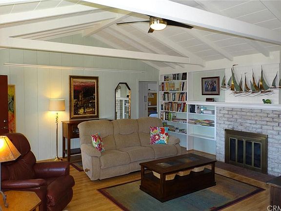 First time on the market for this classic Laguna Beach ocean view cottage. The 1939 residence has all the character of early beach home construction with hardwood floors, beamed ceilings, built-in cabinetry and z-style barn doors. Ocean views to the south and to Catalina Island. The board and batten constructed residence is situated on a 12,000 square foot parcel that borders open space wilderness. On the Street side is a 3 car garage w/ 8' opening, enormous ocean view garage-roof deck and studio space. On the West Canyon side is found a large lawn, patios, wooded valley and winding trail to the wilderness area. The main house has four bedrooms, two baths, den, large living room with fireplace, ocean view dining area and an upgraded kitchen. The sunlit living room and kitchen area offers great potential for creating an ocean view great room. Despite the elevation, the main level can be accessed without stairs. Less than 10 minute walk to beach, shops, restaurants and hiking trails. Three generations of ownership have taken fine care of this special property. Truly a unique and large ocean view site.