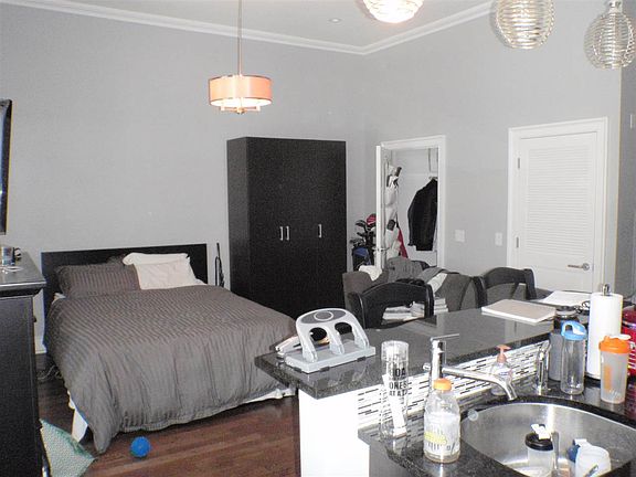 Move into this luxurious Downtown Hoboken Studio rental with a balcony located in the historic Jefferson Trust building. Features: Secure, elevator building, hardwood floors, high ceilings, crown molding, elegant light fixtures, modern kitchen with granite counters and stainless steel appliances, breakfast bar, living area can accommodate a Queen size bed and a sofa, sliding doors in the kitchen lead to balcony, full bathroom with tub, private washer / dryer, located walking distance to the Hoboken Path, restaurants, boutiques, parks, pubs, and public transportation. Tenant pays their own utilities. Parking available for $200 a month. 1 small pet allowed with $250 pet fee + $25 a month. To secure this unit: $2250 (1st months rent), $3375 (security deposit), $1125 (broker fee), $40 (credit check per adult). Ideal for professional single but can work for a couple.