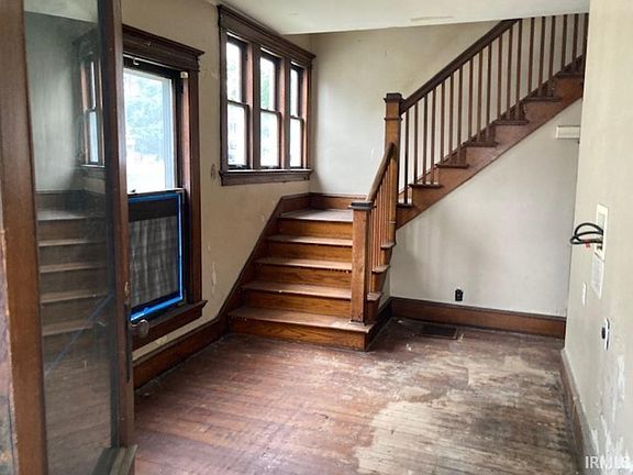 Located close to downtown Kokomo, this two family dwelling has recently been used as a single family home. Downstairs has 1 bedroom with hardwood flooring throughout except in the kitchen & bath. Upstairs offers 2 bedrooms, a 2nd kitchen and access to the walk-up floored attic. Both units offer separate laundry hook-up and access to the basement.