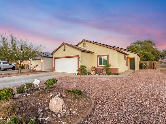 Welcome to this beautiful 4 bedroom, 2 bath home in Buckeye. No HOA, PAID OFF solar, and owned water softener! As soon as you enter you are invited by an open layout, perfect for entertaining. Quartz countertops, tons of cabinet storage and a pantry are just some of the great kitchen features. The split master bedroom allows for ultimate privacy and relaxation. The master also includes a full private bathroom and walk in closet. Enjoy your beautiful grassy backyard with fruit trees and a convenient storage shed. No neighbors to the south. Come check it out today!