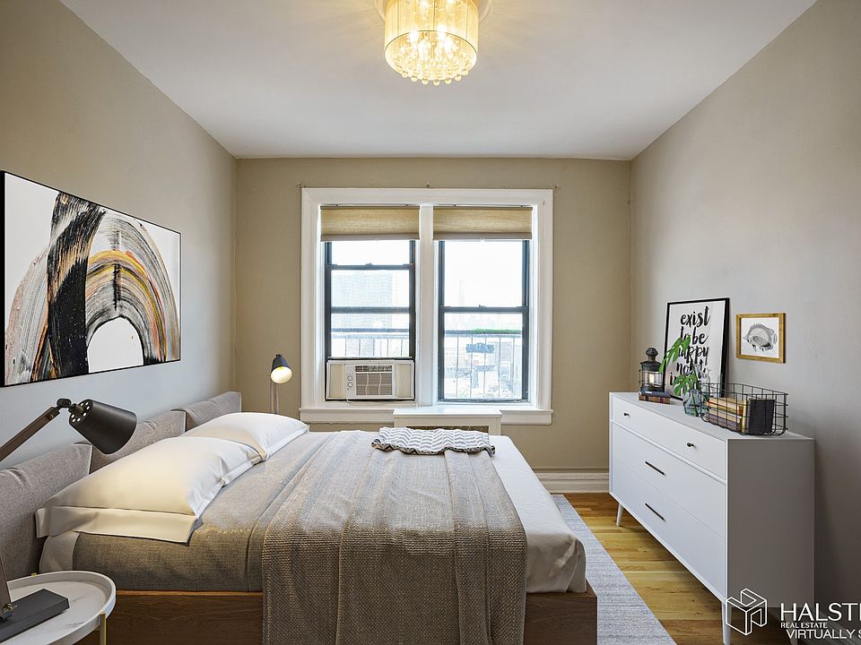 Enjoy NYC Sky line views from every room in this charming updated 1BR/1B w/ den . Oak hardwood floors, New Kitchen Cabinets, Granite countertops and high end stainless steel appliances. Conveniently located near the bus and the LIGHTRAIL, Schools, Parks, Shops, and Restaurants, Laundry in building, low taxes and Maintenance.