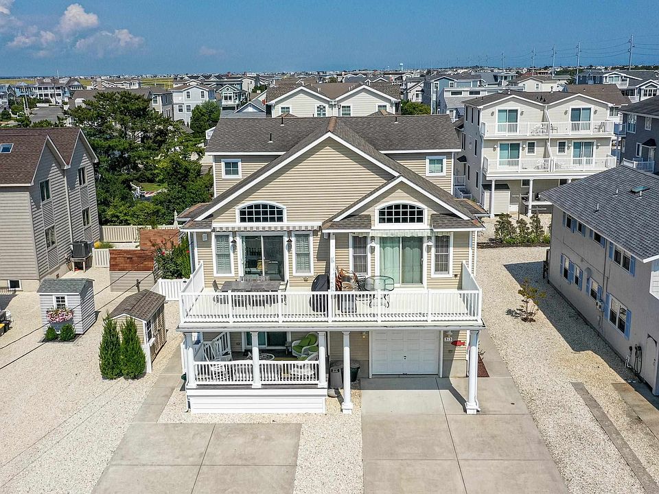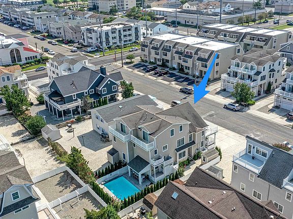 Nestled in a quiet enclave of 79th Street / Sunset Drive, this extra-wide, beautifully upgraded townhome features one of the finest pools you'll find on a side-by-side lot. Set on an expansive 60' x 110' property, the home offers not only an oversized rear yard but also a generous 17-foot interior width—far exceeding the standard Avalon townhome. This additional space allows for huge bedrooms, wide decks, and a sun-drenched, expansive entertaining area on the second floor. Meticulously maintained, the home spans three stories with four spacious bedrooms, all beautifully furnished. The first floor features three large bedrooms (one currently serving as a flex family room and bunk room) and a gorgeous full bathroom. The second floor is dedicated almost entirely to entertaining, offering a chef’s kitchen with stainless steel appliances, stone countertops, a massive center island, and pantry storage. A stunning dining area connects to an expansive vaulted living room, large enough to accommodate two oversized sofas and additional seating—a testament to the room’s scale. A gas fireplace anchors the space, while sliding glass doors lead to a generous deck equipped with a dining table, grill, Sonos audio, and gorgeous bay and sunset views. A powder room and a spacious laundry room complete the second level. The entire third floor is devoted to the primary suite, offering his-and-her closets, a work area, private deck access, and an almost new, luxurious primary bathroom that rivals those found in many single-family homes. The rear yard oasis is truly a showstopper, featuring a large, heated saltwater pool, custom pavers, mature arborvitae for privacy, landscape lighting, a huge outdoor shower, and an incredible cabana with a roof and roll-down shutters, island seating, Azek cabinetry, a granite countertop, a refrigerator, and a sink. A detached shed, along with storage under the front deck, solves your storage needs The property is only a two cross street walk to the beach, with access to the Icona and Windrift making those beach days a little extra fun. A grocery store, multiple restaurants, recreation fields and nightlife are all within a couple block walk of this awesome location. Opportunities like this don’t last long—schedule your showing today before it's too late.