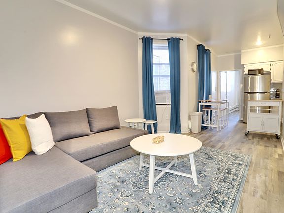 This stunning 2-bedroom, 1-bath apartment is ideally situated just off Palisade Ave in Union City's desirable West Hoboken neighborhood. Only moments away from the bus stop, you can reach Midtown Manhattan in just 15 minutes! Prefer the Light Rail? It's a quick trip to the 9th St Light Rail Station. The unit boasts an open floor plan, a sleek modern kitchen with granite countertops, a subway tile backsplash, and stainless steel appliances. It comes fully furnished with brand new pieces. Heat, hot water, and new A/C units are included in the rent. The location is unbeatable!