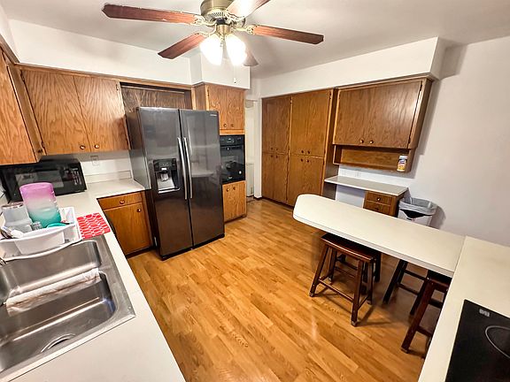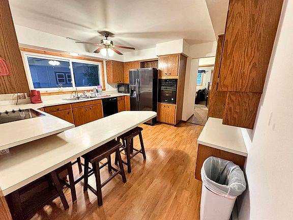 Large one level home on a corner lot in southwest Minot. The kitchen has well maintained oak cabinetry, bar seating off the peninsula, updated appliances, and a large kitchen window view. Stroll on through to the formal dining room from the kitchen and notice there is an abundance of room for dining or entertaining needs. There is a new patio door in the dining room, as well as updated vinyl windows throughout the home. The main living room is spacious and with great natural light from the large window view. The two main floor bedrooms have extra deep closets and share the main full bath. The full bath has ample counter space, double mirrored sliding medicine cabinets, double sinks, and a fun vanity area. A second half bath is located in the hallway off the kitchen and across from the second bedroom. The basement level has a walkout staircase to the garage. There are up to four options for future egress bedrooms on this level. Enjoy a large family room with an electric fireplace and bar area. The lower level shares a 3/4 bathroom among the rooms and the laundry room. The lower level could be a potential rental option as it has its own kitchen. The double garage has storage space and is heated by gas. There is a patio area off the dining room, which is also accessible from the service door of the garage. This location offers close proximity to the Scandinavian Park for enjoying walks and park accommodations.