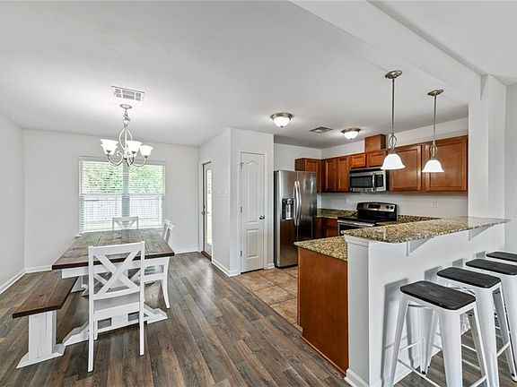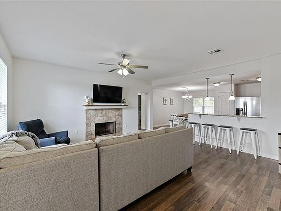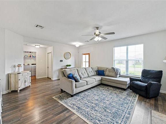 Over 1400 sq ft with an open concept living space. 3 bedrooms and 2 full bathrooms with neutral paint and lots of natural light throughout. Primary is separated from the guest bedrooms and has laminate floors. Primary bathroom suite features a soaking tub, stand up shower, two closets, and spacious vanity. Convenient location with quick Interstate access and near bridge park and levee. Large backyard with privacy fence. 2 car driveway and 1 car garage.