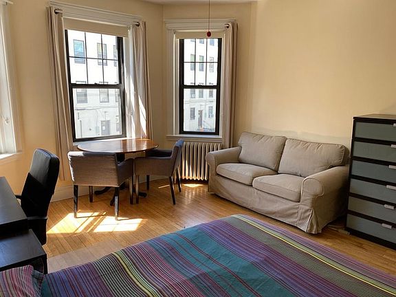 Pack your bags and move right in to your fully furnished apartment, located just steps from the Washington St Green Line stop! This adorable apartment is furnished as a two bed without a living room, but can also be rented as a one bed with a living room. The unit features a fully equipped kitchen, hardwood floors throughout, large sunny windows, and high ceilings. The larger room with bay windows includes a full sized bed, nightstand, a large desk and desk chair, a table with two chairs, a sofa, a chest of drawers and a small tv. The smaller room includes a twin bed, sofa, two nightstands, chest of drawers, large desk & chair. The professionally managed building has laundry room & bike storage. Located just across the street from Whole Foods and the B line. It's just a short 15 minutes walk to the shops and restaurants of Washington Square in Brookline & Brighton Center. Lease length is flexible and the unit is ready for immediate occupancy.