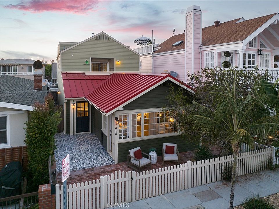 Luxury Live Auction! Bidding to start from $2,000,000! Welcome to a recently remodeled beach house on the iconic Balboa Peninsula that embodies the epitome of coastal living. This captivating property, freshly painted inside and out, exudes a sense of tranquility and coastal elegance that is key to any Newport Beach home. Once you step onto the beautifully tiled front patio, you will know you are home. The enclosed front porch, flooded with natural light, is the perfect, multi-functional room easily used as a lounging room, mud room, sun room, or anything else your heart desires. The lower level is lined with newly installed hardwood flooring. The great room consists of a dining area and a living room outfitted with a brick fireplace with tiled hearth to offers both warmth and charm. The heart of the home, a modern farmhouse kitchen, beckons with custom blue cabinetry, pristine white marble countertops, a tiled bar top, and a beautiful archway. Equipped with premium Bertazzoni appliances, you can truly unleash your inner chef. Convenience is key with an additional external door opening next to a full bathroom downstairs, finished with elegant tiling and rock bottom shower, making it easy to rinse off after a day at the beach. Ascending to the upper level, you'll discover new seagrass flooring offering both comfort and durability - essential for any beach house. The sliding barn door closets with custom built-ins in each bedroom provide a touch of modern farmhouse charm to the upper level. Stepping outside to the upper-level patio, you'll find a tiled seating area where you can enjoy the cool ocean breeze and sunset views. But the true gem of this property is the large rooftop deck, pre-wired for any electronics, offering the ideal location for sunset dinners in the summer. In addition, the garage has been thoughtfully enhanced with epoxy flooring and a convenient utility sink, alongside washer and dryer hookups. This Bayside community is within walking distance to many of Southern California's most iconic beaches, Balboa Pier and Fun Zone, Newport Harbor, the Balboa Ferry, and so much more.