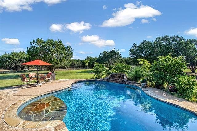 Best Affordable Home in Dripping Springs on Acreage with Sparkling In-Ground Pool. Beautiful Mature Oaks, Landscaped, Fenced and Cross Fenced. Recent updates include paint, carpet, kitchen cabinets, counter tops, new appliances, fixtures & much more. Storage building, RV connections, fenced for garden. Horses allowed. Private, no HOA. Just minutes to Dripping Springs Schools, shopping and dining.