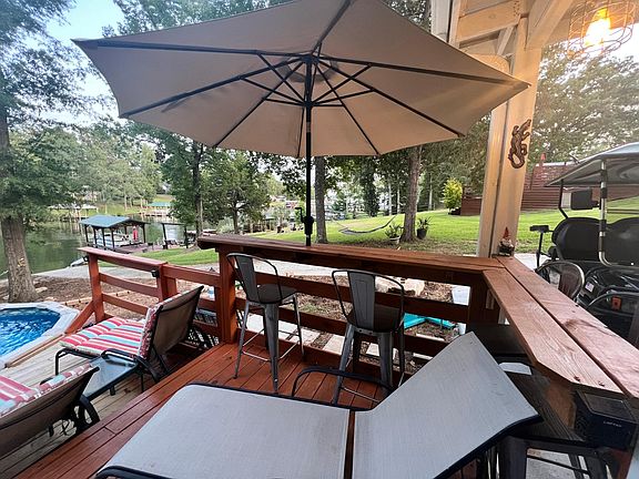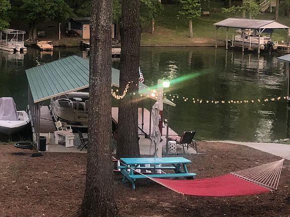 Cute lakeside home with fresh paint and new flooring and carpet. It is fully furnished, with all the kitchen appliances, and more! Screened porch, decks, patios, fireplace, fire pit, dock and boat ramp. It's on a quiet cul-de-sac. There is a security system, wifi, Direct TV Streaming 4 flat screen, smart TV's, enclosed sunroom, outdoor blue-tooth stereo and outdoor kitchen with nice outdoor patio lighting. Queen master bed, 2 double beds in guest room and a futon sofa bed in sunroom are very comfortable. Office Space with desk. This home is only for rent 10/1/2023 through 3/30/2024, as it is our Summer home. All utilities are included, and home is stocked with linens, dishes, wine frig., Keurig, espresso maker, airfryer & more. Kayaks, dock and paddleboat are free to use while you stay. Pool is closed 10/2023 thru 3/2024. PREFERRED TENANTS ARE TRAVELING MEDICAL PROFESSIONALS, OR BUSINESS TRAVELERS. OTHERS MAY BE CONSIDERED ON A CASE BY CASE BASIS. PET FRIENDLY WITH APPROVAL. $250 NON-REFUNDABLE, PER PET, FEE, $1000.00 REFUNDABLE DEPOSIT, BACKGROUND CHECK REQUIRED FOR ALL TENANTS (MAX 3 TENANTS). Non Smoking Property, 2 Car Parking, Garbage Service Included, Lawn Care Included, No Large Events or gatherings allowed. Lease max is 10/2024 thru 3/2024 with a minimum of 3 month stay.