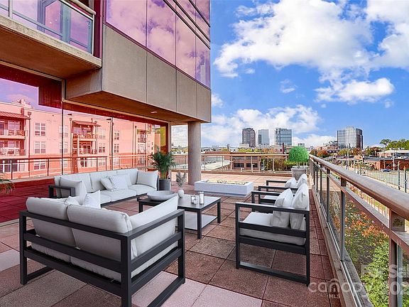 Welcome home! The Arlington, affectionately known as the "Pink Building," is nestled in the heart of South End. This exceptional 5th floor end-unit boasts a massive 1,300 sq foot wrap-around patio, offering breathtaking views of South End & Uptown. Whether you're hosting gatherings, soaking up the sun, or simply enjoying one of South End's largest private patios, this space is a true gem. Inside, you'll find granite counters and SS appliances. The open living area seamlessly connects the kitchen, dining space, & living room w/ a gas fireplace. The private primary suite features double vanities and a spacious walk-in closet w/ custom cabinetry. The Arlington also provides covered parking, a front desk concierge, a rooftop pool, fitness center, & terrace offering stunning Uptown views! Don't miss your opportunity to own this unique piece of South End living, where lifestyle meets luxury. Truly breathtaking views. Some of the photos are virtual staging of what the space could look like.