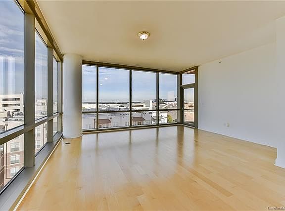 Light-filled 9th floor condo with fabulous city views from floor to ceiling windows in every room. This corner unit also has two balconies & is move-in ready. Condo has new paint, stainless appliances, hardware & carpet. Beautiful hardwoods thru-out living area. Located on the light rail, many shops, bars, restaurants are within walking/riding distance, including all that SouthEnd and Uptown have to offer! Amenities include concierge, rooftop pool & patio space, fitness center. Wonderful value!