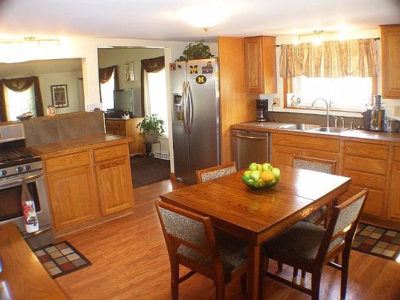 Very nice 3 bedroom home, much larger than appears from the exterior with a very nice updated & remodeled interior. Oak kitchen with beautiful tile counter tops, newer flooring, drywall, & paint, updated main bathroom, large family room with surround sound, gas log fireplace, and sliding door to large rear deck. Generous 100x100 lot with vinyl fencing, fruit trees, garden area, & 12x14 shed. Deep drive through and finished garage, perfect for a workshop! Great area.