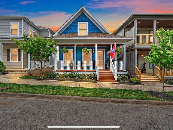 This 3-bedroom Cape Cod-style home is filled with upgrades. Enjoy solid hardwood floors on the first level and LVP on second level, new smart kitchen appliances, granite countertops, fresh interior paint, and ample natural lighting. The home also features multiple built-ins, gated and covered side walkway to garage/alley, a balcony overlooking the amphitheater, and more. The first-floor owner's suite comes with an attached flex space leading to balcony, perfect for a nursery, private study, or extra living space. Upgrades include new high-end light fixtures, in-wall speakers in the living room and balcony, with more wiring in the flex room. The 2-car garage comes wired for an electric car charging hookup. New roof 2023. Neighborhood features 3 dog parks, community garden, playground and amphitheater. Shops, coffee, restaurants, and more are walkable within minutes! Located 20 minutes to Nashville & Clarksville! Currently priced $25,000 under market value!