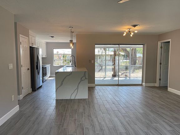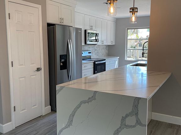Gorgeous and Modern fully remodeled 2 bd/ 2 bath split floor plan with a large 2 car garage. Wood plank tile throughout; brand new kitchen with beautiful Quartz counters, white shaker cabinets, and new appliances. Freshly painted inside and out. Oversized 12 x 25 covered/screened lanai! The total SF of this home is 2050SF! This home has washer/dryer in unit. Both bedrooms have large walk in closets! This home is located in desirable South Venice, minutes away from the southern tip of Legacy Trail at Shamrock Park & Nature Center also Venice Beach and Manasota Beach. Lots of options for dining and shopping. Call for your private showing today! Renter is responsible for electric bill and lawn services. No pets, no smoking.