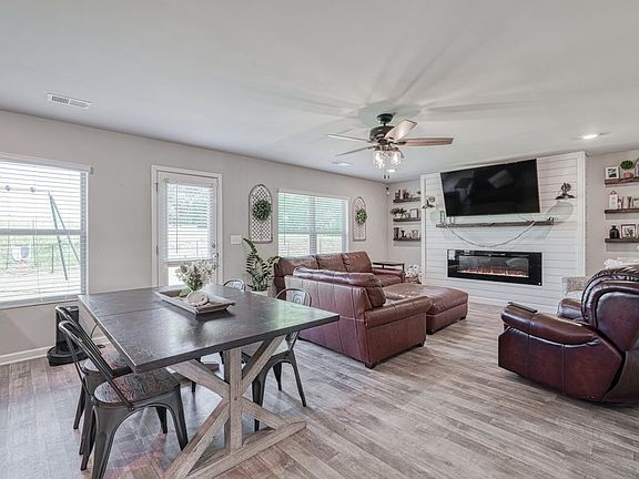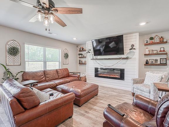 - Ceiling Fan(s), Attic Stairs Pulldown, Fireplace, Soaking Tub, Ceiling - Smooth, Solid Surface Counters, Laminate Counters, Open Floorplan