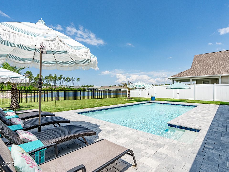 This property has sold! Discover similar listings by reaching out to us for an updated list of available properties that match your preferences. Thoughtfully designed and brimming with upgrades, this 4BR/3BA Southern Coastal ''Kittiwake'' home blends relaxed elegance with everyday functionality - all in one of Panama City Beach's most popular neighborhoods. From the moment you step through the private grand foyer, you'll notice the refined touches: luxury vinyl plank flooring throughout the main living areas, plush carpeted bedrooms, and a wide-open layout that flows seamlessly between the great room, kitchen, and dining space. A 10' tray ceiling gives the space a light, airy feel, while a wall of three-panel glass sliders brings the outdoors in - filling the home with natural light and opening to a screened lanai overlooking your private pool and peaceful pond. No rear neighbors...just calm water views and quiet. The chef's kitchen is both beautiful and practical, featuring custom soft-close cabinetry, granite countertops, a stylish tiled backsplash, Whirlpool ''Gourmet Kitchen'' stainless appliances, a gas cooktop, and a spacious center island perfect for gathering or quick meals. The primary suite offers a quiet retreat with a custom barn door, a large walk-in closet, double vanity, and a tiled walk-in shower. Additional highlights include a dedicated laundry room with sink, a covered front porch, 2-car garage, and hurricane impact windows for added peace of mind. Breakfast Point's prime location means everyday errands are easy, with Publix, Home Depot, restaurants, and more just outside the neighborhood entrance. You're minutes from the white-sand beaches, Pier Park, and Frank Brown Park, and within walking distance to A-rated Breakfast Point Academy (K-12) and Arnold High School. Homes in Breakfast Point are in demand for a reason...schedule your private showing today!