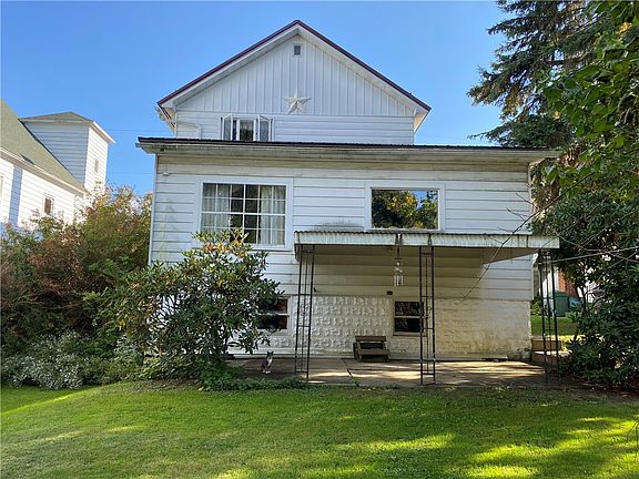 HOME SWEET HOME - This is a 2 Bedroom home with a walk-in closet area. Former barber shop on the first floor that is currently being used as a storage room, but offers several options for your individual use. Lots of cupboards in the Kitchen plus an island with seating for 4. The electric range/oven is included with the sale. Large living room and a dining room. Oversized Bathroom with several built-in cupboards. Enclosed front porch with access to either the home or the former barber shop. Back covered patio. Metal roof and aluminum siding. Shrubbery in the backyard provides privacy. Possibility of off-street parking in the back. Storage shed.