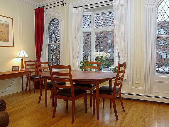 Amazing parlor level floor through 2 bedroom 1 bath with 2 parking spaces deeded. 2nd bedroom would make a perfect kids' room or office. Spacious living room with original leaded glass windows and wood floors, huge master with historical paneling, and a beautiful sunroom with new windows and plenty of light. 2 fireplaces in unit, beautiful common gardens in front of building. Perfect location between Exeter and Fairfield.