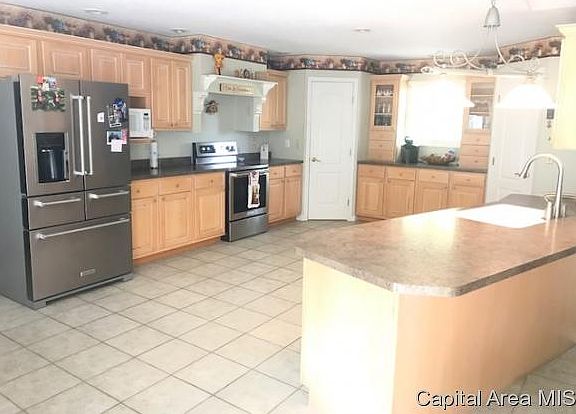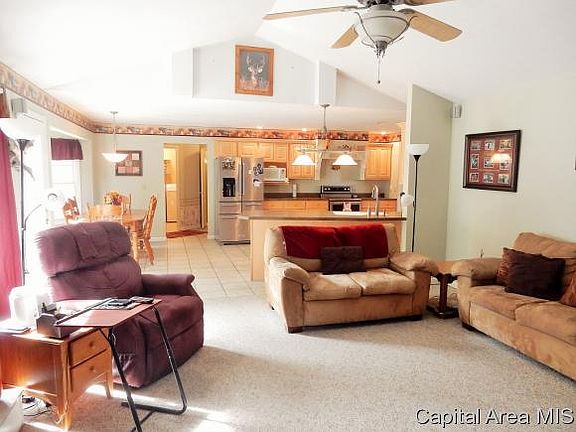 1 story w/split master bedroom (closet is 8'4 x 9') & 2 others bedrooms. 4th bedroom in LL. Dining w/hardwood floors. Lite maple cabinets, 2 pantry's & large snack bar,tiled floor. Gas fireplace could be converted to wood-burning. Main floor laundry, 2 car attached plus 2 car detached garages. Fenced back yard. 1 1/2 lots in cul de sac/ Poured basement. Sump pump and backup. Office and full bath in LL. 2 full baths upstairs.