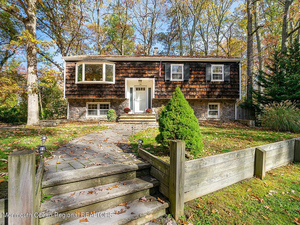 Stunning single family home for rent in Shark River Hills! 4 BR 2 bath home w/ vinyl floors throughout. Multiple Skylights in the home for natural sunlight. The kitchen & both baths have heated floors! The 1st floor includes a BR, LR, bath & laundry and the 2nd floor includes the kitchen, bath, 3 bedrooms, family room & dining room. The exterior of the home offers a large driveway with 1 car garage, back deck off the dining room slider & a patio off the 1st floor living room slider, all enclosed in the secluded fenced in yard that is surrounded by green acres. Only 2 blocks to the river! Less than 10 minutes to the beach and minutes to Rt 18, GSP, Jersey Shore Outlets & great restaurants. Dogs to be considered on a case by case basis. No cats and no smokers. Available January 1, 2023.