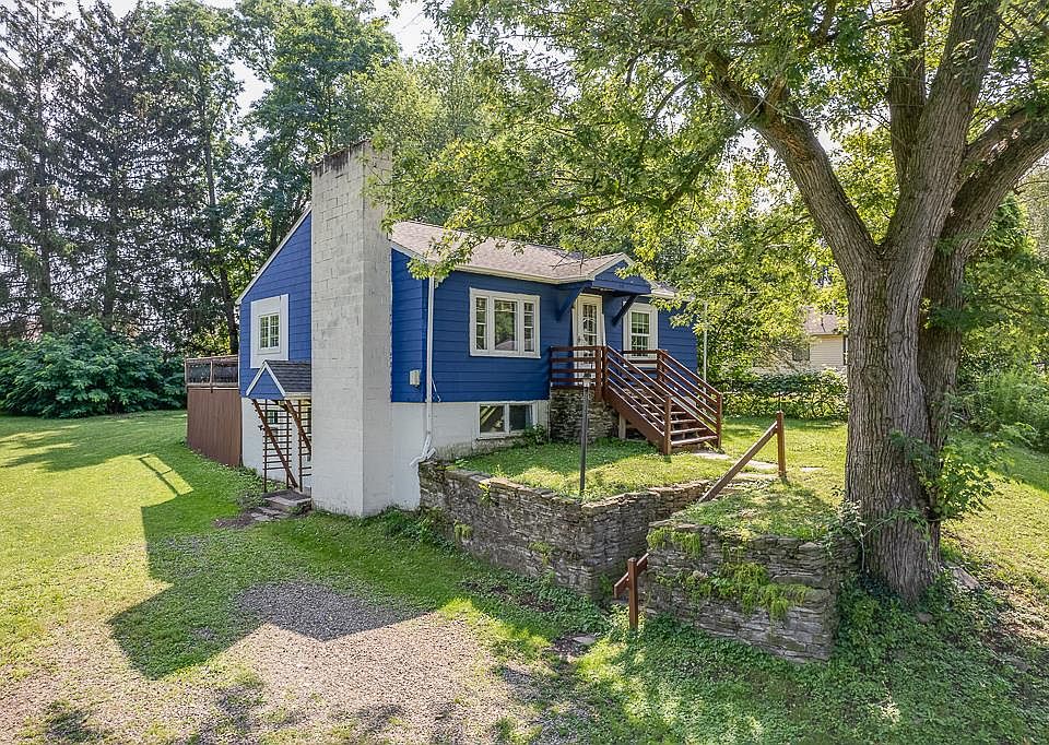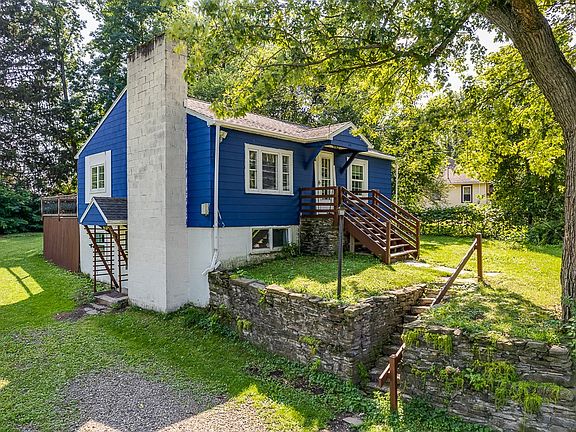This 1,370 sq ft cutie has 2 bedrooms and a full bath upstairs along with the full bath, kitchen, dining area and living room with beautiful stone fireplace. The lower level also has a kitchen, dining area, living room with stone fireplace, a full bathroom and 1 bedroom. The laundry is setup for 2 sets of washer/dryer in a communal area. This is currently a single family, but could EASILY be an up down 2 unit or used as an in-law suite downstairs. The possibilities are endless. Newer roof, boiler, and hot water tank.
