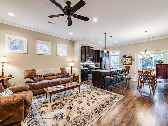 You don't want to miss this spacious like new home located in Downton Square! MOVE IN READY! Beautiful foyer welcomes you to the spacious living room and kitchen/dining area. You will love all the open space this home offers and having all hardwood and tile flooring throughout will make cleaning a breeze. The kitchen is perfect for entertaining and offers all stainless appliances with an over-sized island with seating area. The master bedroom is a dream providing lots of space and a large walk-in closet and you will adore the master bath with double vanities and gorgeous tiled shower. This beauty offers another great sized bedroom and full bath. Enjoy evenings sitting out in your screened porch. Concrete patio in back perfect for your grill. There are amenities galore with the pool and Clubhouse there for your entertainment!