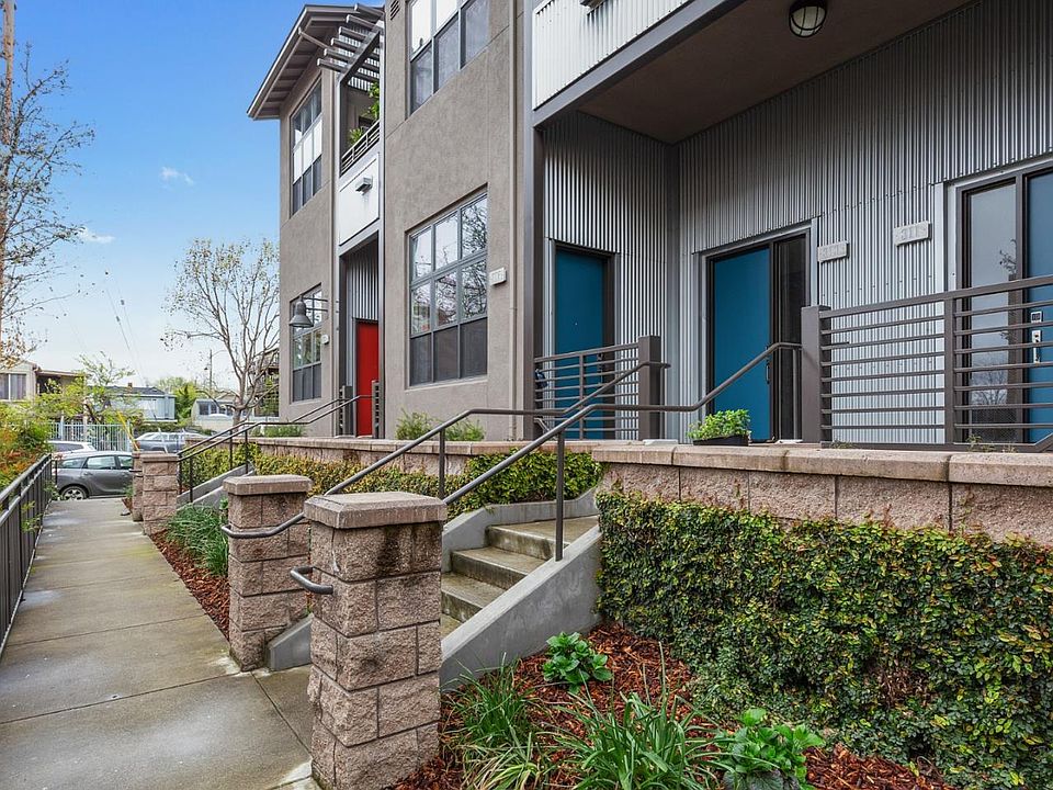 Gorgeous home in Jingletown's The Estuary community. A ready to move-in home with 3 bedrooms and 2.5 bathrooms over two stories of 1581 sq. ft. per public records. As you enter the living room you are greeted by soaring ceilings, views of the Oakland Estuary and gleaming laminate floors. Up just a few steps from the living room is the large kitchen/dining combo and the half bath. The kitchen is a nice size and boasts all stainless steel appliances. A few steps down the hall is the light-filled master bedroom with laminate floors, and large ensuite featuring stall shower and sumptuous soaking tub. Just upstairs are two side-by-side bedrooms w/ a guest bathroom off the hall and a stackable washer dryer. Access to the massive 2-car tandem garage and under unit storage is down just a few steps from the dining room. A commuter's dream, close to Fruitvale BART, Alameda, Downtown Oakland, SF & the South Bay!