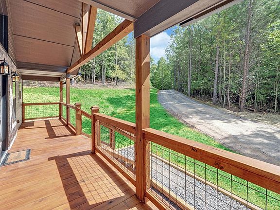 This newly built cabin blends rustic charm with modern convenience just minutes from the heart of Murphy. Inside, wood-lined vaulted ceilings and a stone fireplace set a warm, inviting tone, while granite counters and a central kitchen island make the open layout feel effortlessly functional. Fiber optic internet supports remote work or streaming nights in, but with covered porches, a fire pit, and seasonal mountain views, you'll want to spend just as much time outside. Thoughtfully designed with walk-in closets, a full laundry room, and single-level living, this home offers mountain peace with quick, central access to shops and dining in Murphy, Blue Ridge, Georgia, and Copperhill, Tennessee.
