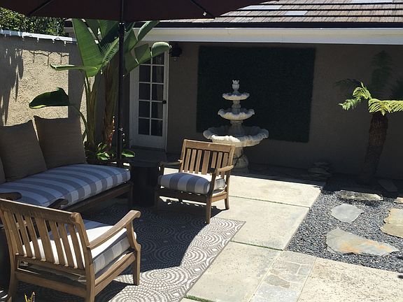 Ocean views from the backyard of this San Clemente beauty. This home has 2,055 sq ft living space, 4 bedroom, 2bath, family room, living room, kitchen, laundry room, spacious courtyard, 2 car detached garage, and covered patio. The master bedroom and the living room have 2+ steps when entering room. Hardwood floors throughout and carpet in bedrooms. Gas fireplace in living room and New double pain windows throughout (6 sliders, 1 set French doors). Backyard landscape environmental / water friendly and owned solar panels equipt for family of 5. New air-conditioner, tankless water heater & furnace. New vinyl siding, vinyl wrapped facia and exterior of house painted.