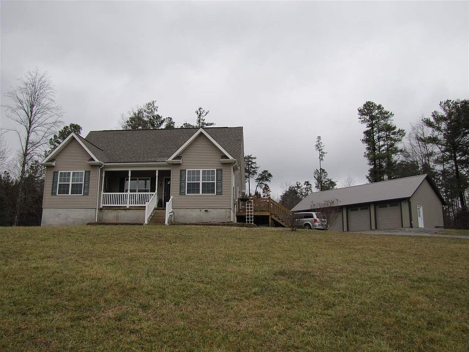 1 1/2 story home sitting on 7.83 acres, home includes 3 BR, bonus room, 3 full baths, open kitchen and living area, full unfinished basement, covered front porch to take advantage of great view, large open deck at back. Adjacent to home is a 4 car and detached garage which uses for it are limitless.