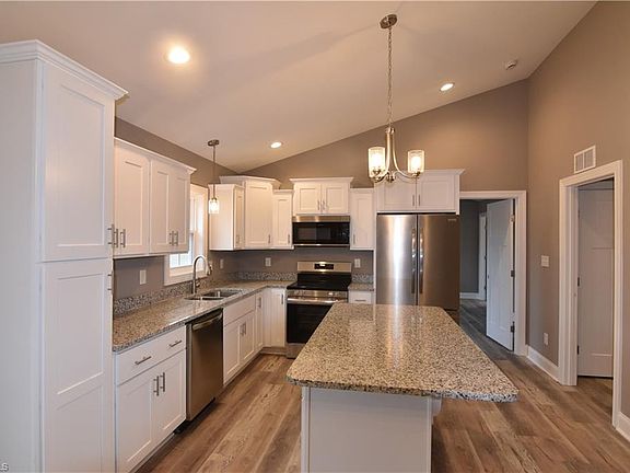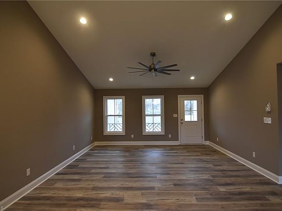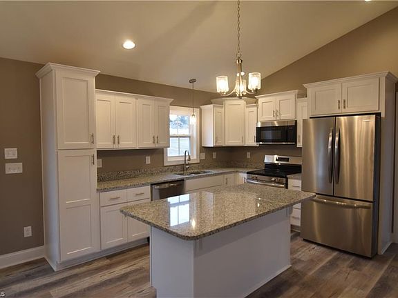 New construction with three bedrooms and two baths, vaulted great room, shaker style kitchen cabinets with granite countertops, kitchen island, stainless steel appliances including a refrigerator, range, dishwasher, and built-in microwave. The primary bath has granite countertops, a double vanity, and a walk-in closet. The hall bath has granite countertops. All the floors are vinyl plank. The front porch and the back porch are covered. Concrete driveway and double garage.