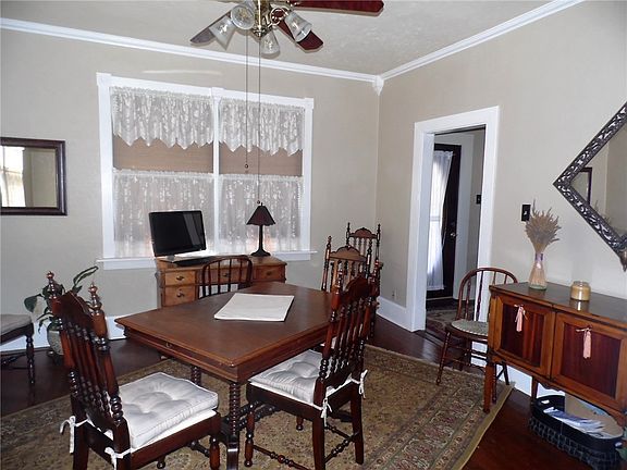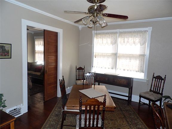 Victorian meets modern living! Perfect 4 bedroom 2 story. The huge 2 car det. garage is a real Man's Cave! The 12X20 workshop & storage rooms is the bonus Cave that's attached to the garage! Covered front porch with a swing, fenced yard 8X8 deck in the back. Beautiful floors & woodwork, pocket doors, crown molding, old world charm. 8 ceiling fans, built in china, recessed lighting. A Grand Master 3rd floor Bedroom has a sitting area with built in storage bench, pine plank floors, a huge tiered closet, & 4X10 outdoor Balcony. 2nd and 3rd bedrooms include walk-in closets. Extra storage everywhere, a remarkable basement with walls of built in shelving, a shower stall. Convenient to shopping, boating, local park, minutes to California University, Interstate travel to Pittsburgh 35-40 min. "This home is just something special!!!" Includes 1 year AHS Home Warranty.