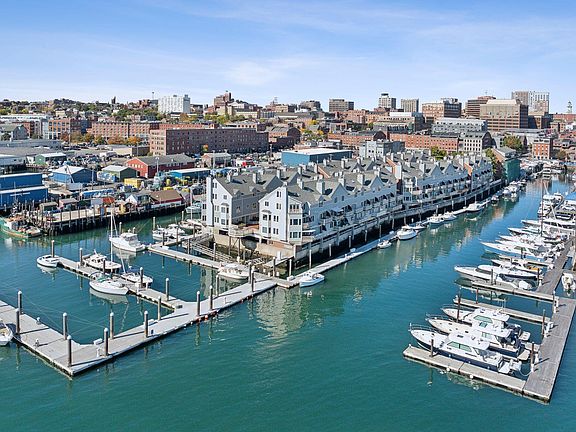 A stunning waterfront condo in the highly sought-after Chandler's Wharf community, located in the heart of downtown Portland. This exceptional end unit features three spacious ensuite bedrooms, a beautifully appointed kitchen with marble countertops and premium appliances, and a sun-filled dining area. The inviting living room with a gas fireplace provides panoramic 180-degree views of Portland Harbor. Two private sun decks are the perfect setting for outdoor relaxation. Just around the corner from the vibrant shops, dining, and energy of the Old Port, this home is a luxurious full time residence or a refined coastal getaway.